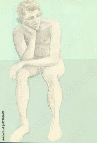 © Elizabeth, Naklejka premium Man sitting sketch