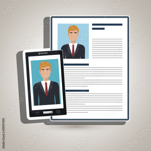 Fototapeta premium man smartphone find person cv vector illustration graphic