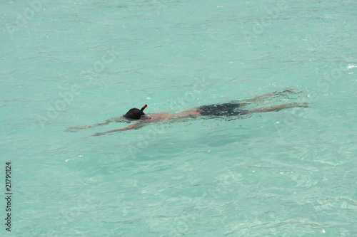 © Fernando Soares, Obraz premium Man snorkeling in crystal clear