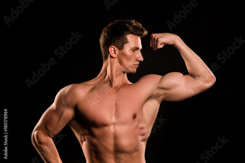 © be free, Fototapeta premium Man sportsman flex arm with fist