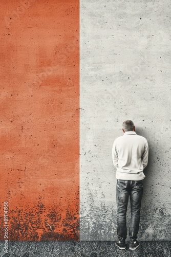 © MediaStockAI, Obraz premium Man Standing Before a Wall