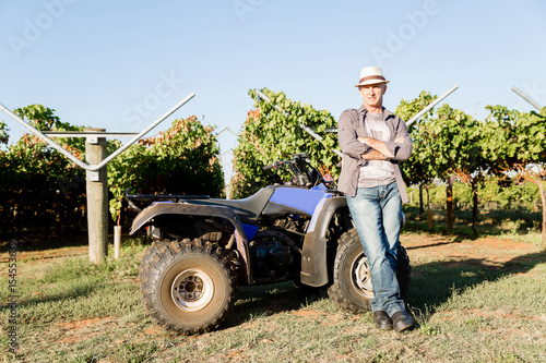 © Sergey Nivens, Obraz premium Man standing next to truck in vineyard