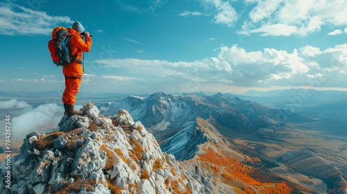 © olegganko, Obraz premium Man Standing on Mountain Summit