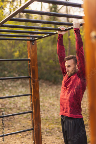 Fototapeta premium Man stretching after an outdoor workout session