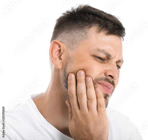 © Pixel-Shot, Obraz premium Man suffering from toothache against white background