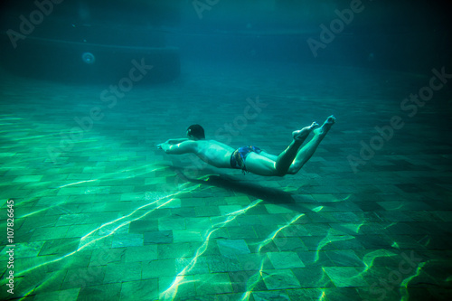 © shevtsovy, Fototapeta premium man swim underwater pool