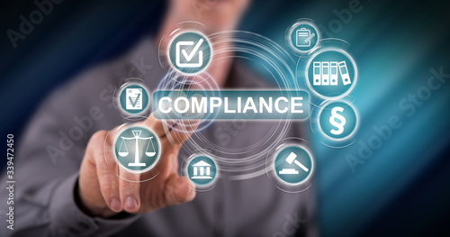 © thodonal, Fototapeta premium Man touching a compliance concept
