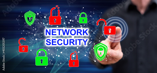 Obraz premium Man touching a network security concept