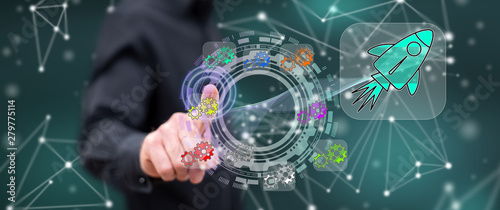© thodonal, Naklejka premium Man touching a teamwork success concept