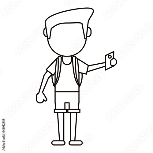 © Jemastock, Fototapeta premium man tourist holding passport thin line vector illustration eps 10