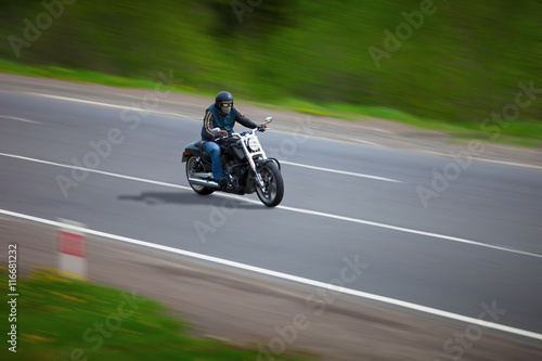 © pzAxe, Fototapeta premium Man traveling on a classic motorcycle - chopper