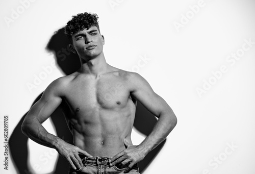 Fototapeta premium man trendy torso healthy bodybuilder person background muscular fit attractive