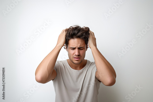 Fototapeta premium Man upset, sad, dissatisfied in white background