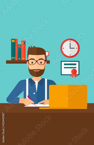 © Visual Generation, Fototapeta premium Man using laptop for education.