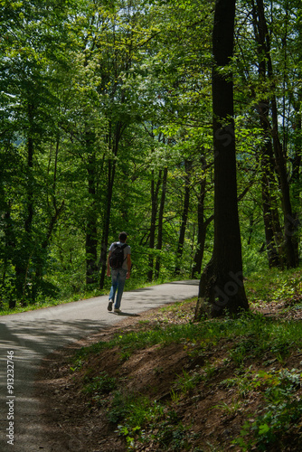 © Nikolina, Obraz premium man walking in a forest
