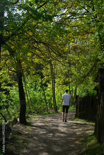 © Nikolina, Obraz premium man walking in a forest