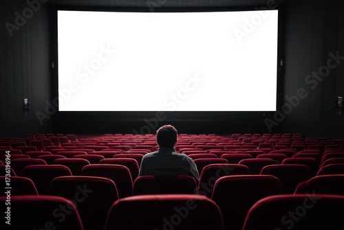 © Igor, Obraz premium Man watching movie on mockup screen in dark theater