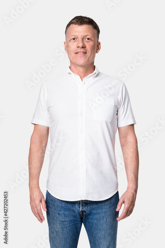 © Rawpixel.com, Fototapeta premium Man wearing white long-sleeve shirts with jeans