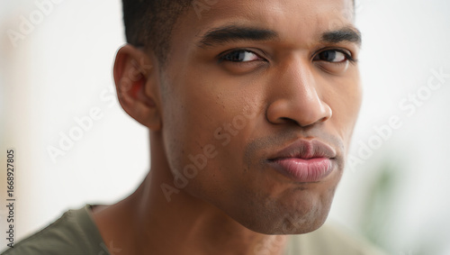 © Viktor_D, Fototapeta premium Man whistling with puckered lips, casual mood.