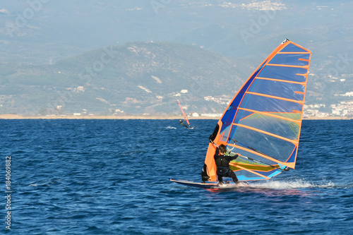 © Efi, Naklejka premium Man Windsurfing Sea Beach Winter Sport