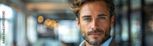 © kramynina, Fototapeta premium Man with a beard and a suit jacket, portrait, banner