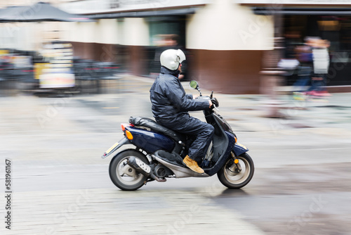 © Christian Müller, Fototapeta premium man with a scooter driving in the city