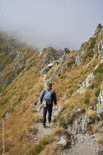 Fototapeta premium Man with backpack hiking