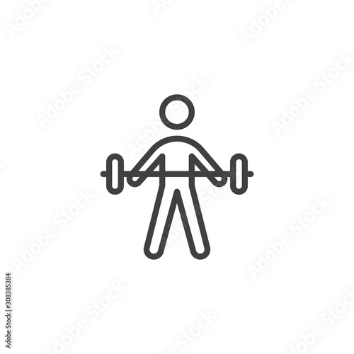 © alekseyvanin, Obraz premium Man with barbell line icon. linear style sign for mobile concept and web design. Weightlifter exercise with barbell outline vector icon. Symbol, logo illustration. Vector graphics