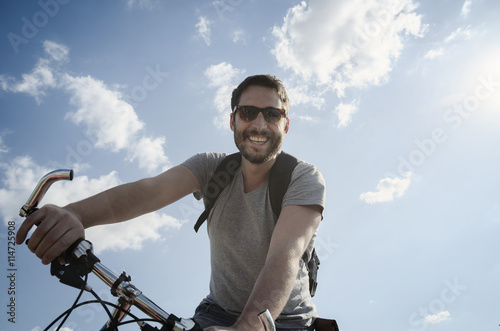© hitdelight, Fototapeta premium Man with bicycle