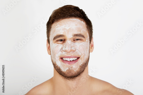 © Piotr Marcinski, Obraz premium Man with cream moisturizer on his face.