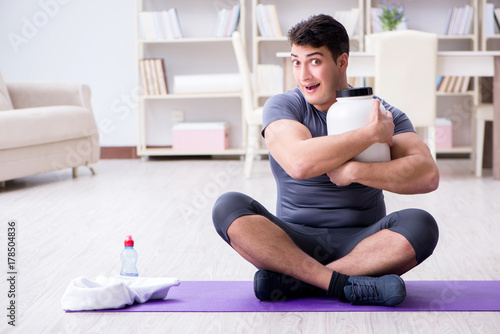 Fototapeta premium Man with food supplements in sports and healthy lifestyle concep
