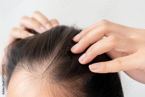 © Darya Lavinskaya, Naklejka premium Man with hair loss problems closeup. Alopecia balding hairs on man scalp