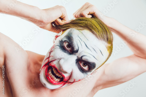 © kanashkin, Naklejka premium Man with Halloween face art on white background