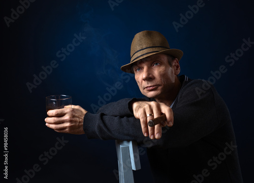 © Igor Normann, Fototapeta premium man with hat smoking cigar