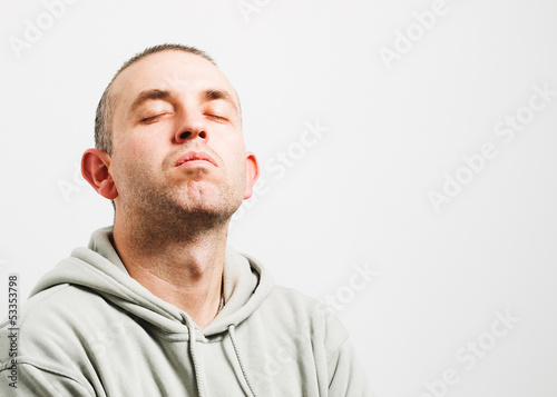 Obraz premium Man with head up and eyes closed