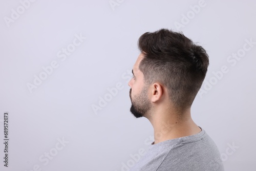 © New Africa, Fototapeta premium Man with healthy hair on light grey background, space for text