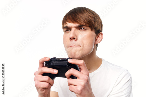 Fototapeta premium man with joystick playing video game