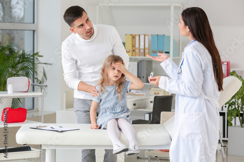 Fototapeta premium Man with little daughter visiting pediatrician in clinic