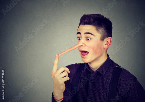 © pathdoc, Obraz premium Man with long nose. Liar concept.