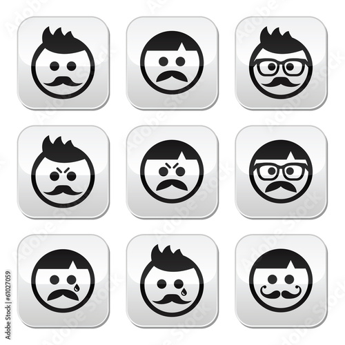 © redkoala, Obraz premium Man with moustache or mustache, avatar vector buttons set