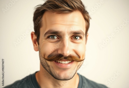 © iushakovsky, Obraz premium Man with moustache, smiling, looking directly at the camera