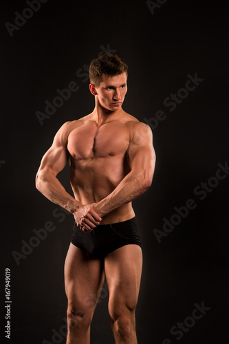 Fototapeta premium man with muscular body of bodybuilder in pants