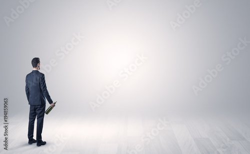 © ra2 studio, Obraz premium Man with object in his hand in an empty space