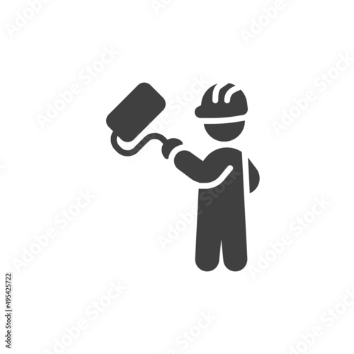 © alekseyvanin, Fototapeta premium Man with paint roller vector icon