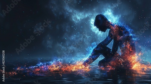 Fototapeta premium man with psychological disorder suffering from depression stress and anxiety...