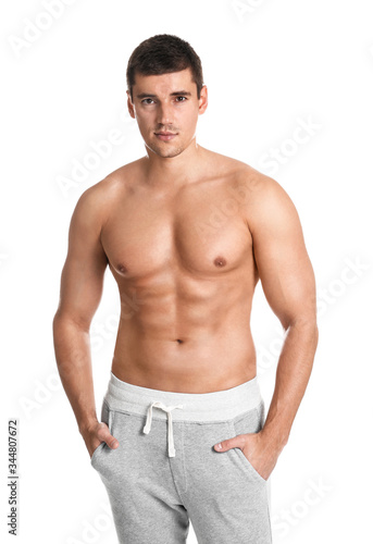 Fototapeta premium Man with sexy body on white background