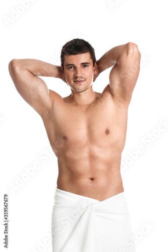 Fototapeta premium Man with sexy body on white background