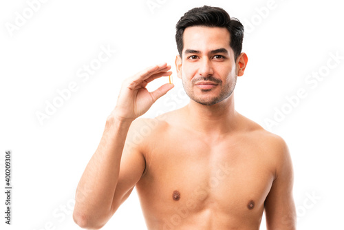 © AntonioDiaz, Obraz premium Man with supplement pill