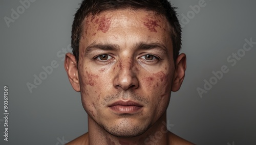 © LimeSky, Fototapeta premium Man with troubled skin and acne scars