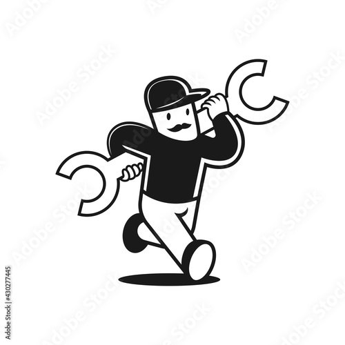 © irondah, Naklejka premium man with wrench. repairman with hat. logo character vector illustration